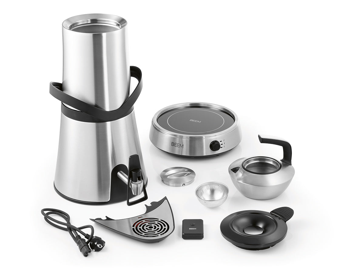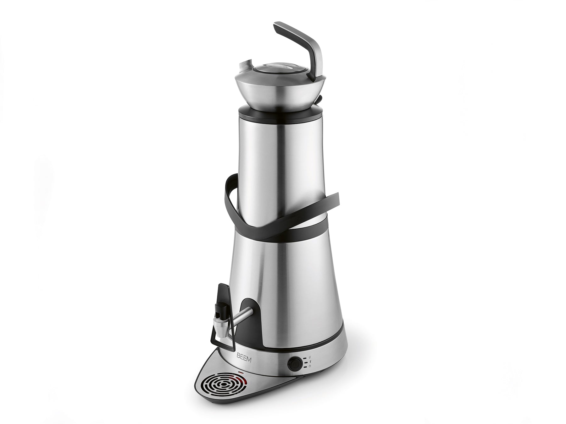 Изисканият, пресен чай е задължителен за всеки повод. С модерните самовари на Beem можете да предложите на гостите си изключително удоволствие за тялото, душата и окото. Самоварът "Amira" е идеален за продължителна професионална употреба. Той разполага с голям резервоар за вода от 10 литра и допълнителен чайник от 1,2 литра с подвижна цедка за чай. Благодарение на интелигентната индукционна технология, основата на самовара остава неподвижна, докато съдът за вода може лесно да се мести. Двустенната конструкция на самовара осигурява максимална енергийна ефективност. За допълнително удобство, автоматичната защита от работа на сухо, предотвратява прегряване и натрупване на котлен камък. Интелигентна система за известяване ви предупреждава незабавно чрез малък безжичен пейджър, когато самоварът е изтощен, така че винаги да знаете нивото на напълване. И тъй като естетиката е все по-важна, самоварът впечатлява и с висококачествения си дизайн, което го прави впечатляващ централен елемент във всяка стая. Практичният дозатор за една ръка, изработен от здрава неръждаема стомана, също допринася за стилния външен вид и прави наливането лесно и неусложнено. Самоварът Beem "Amira". Иновативна технология за перфектно удоволствие.