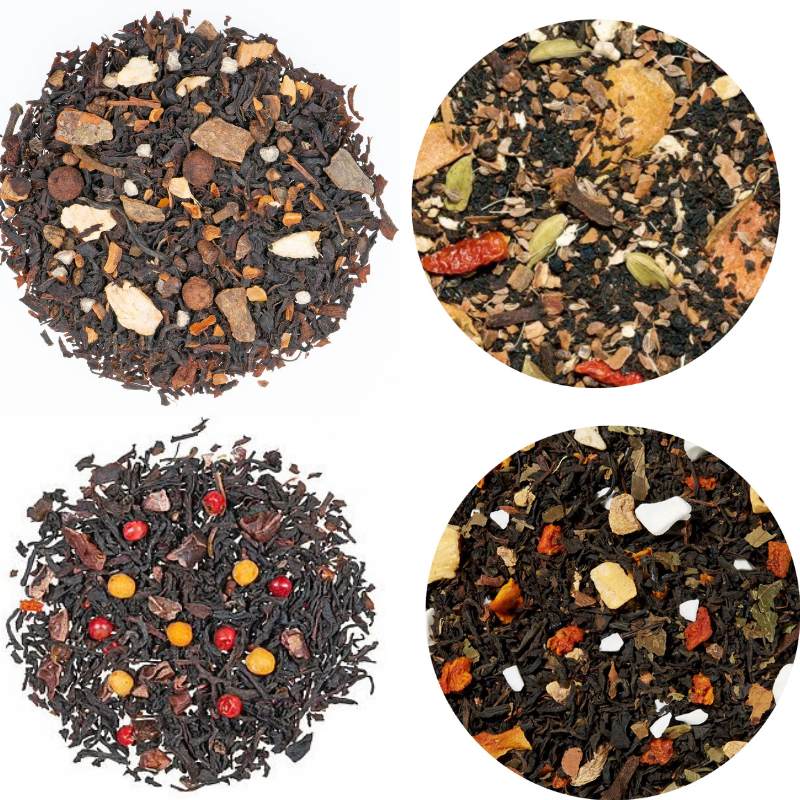 1. Черен чай Чили трюфел - Приятна пикантна нотка се комбинира чудесно с вкуса на шоколадов трюфел. Леко тръпчивите и малцови елементи на черния чай увеличават удоволствието.